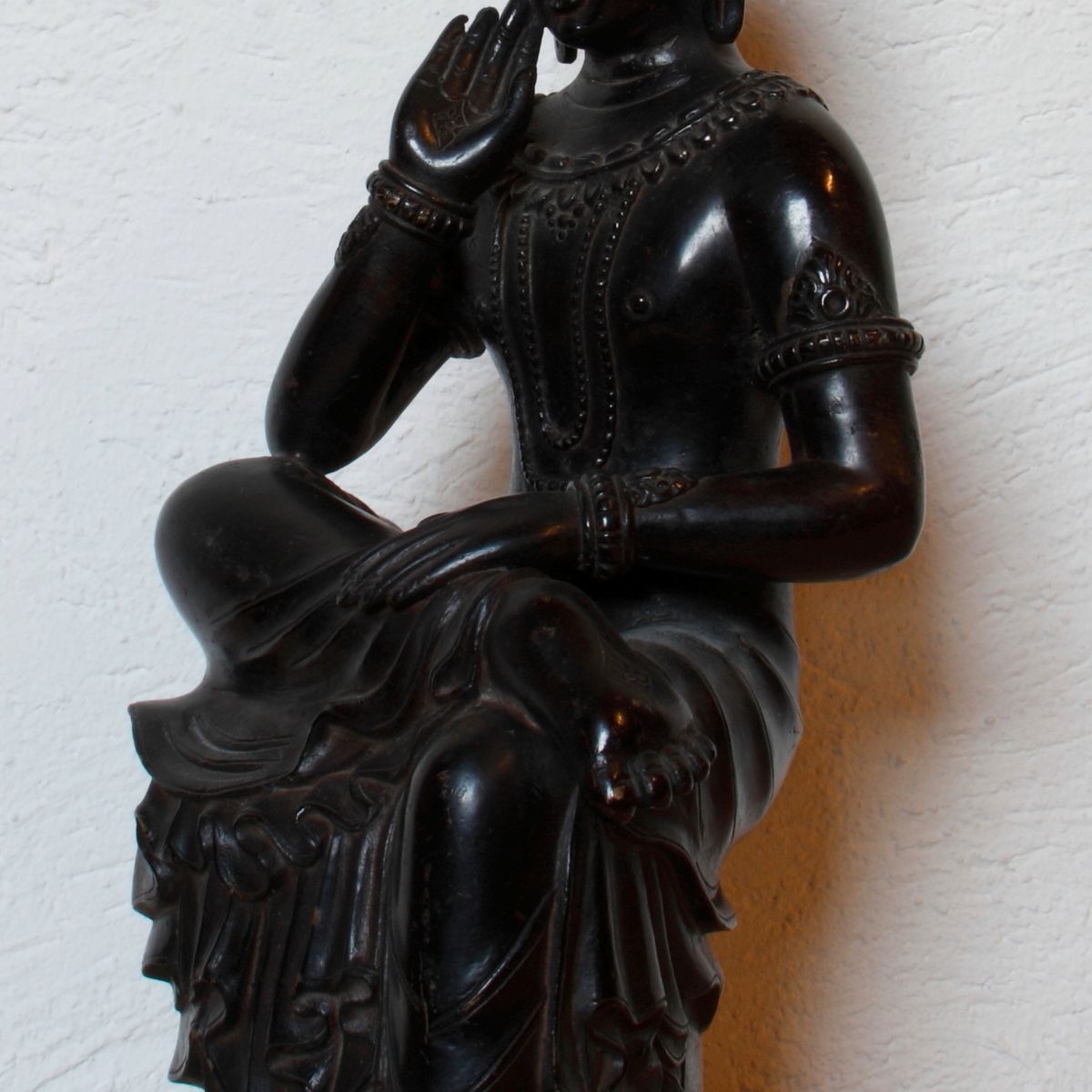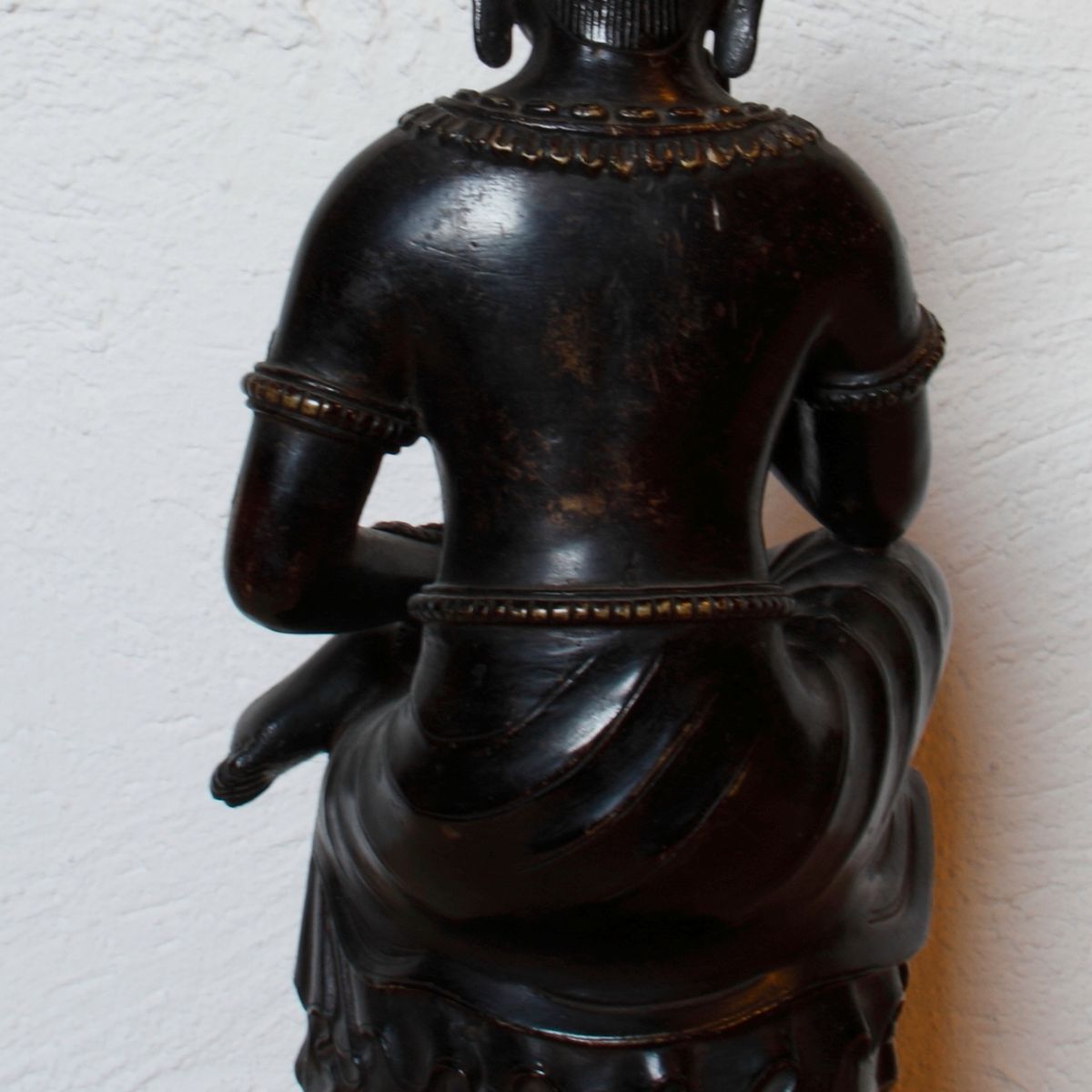 Bei dieser dunkel bemahlten Kupferstatue des Zukunftbuddhas war mit Sicherheit die Statue des Maitreya aus dem Nationalmuseum von Korea das Vorbild.